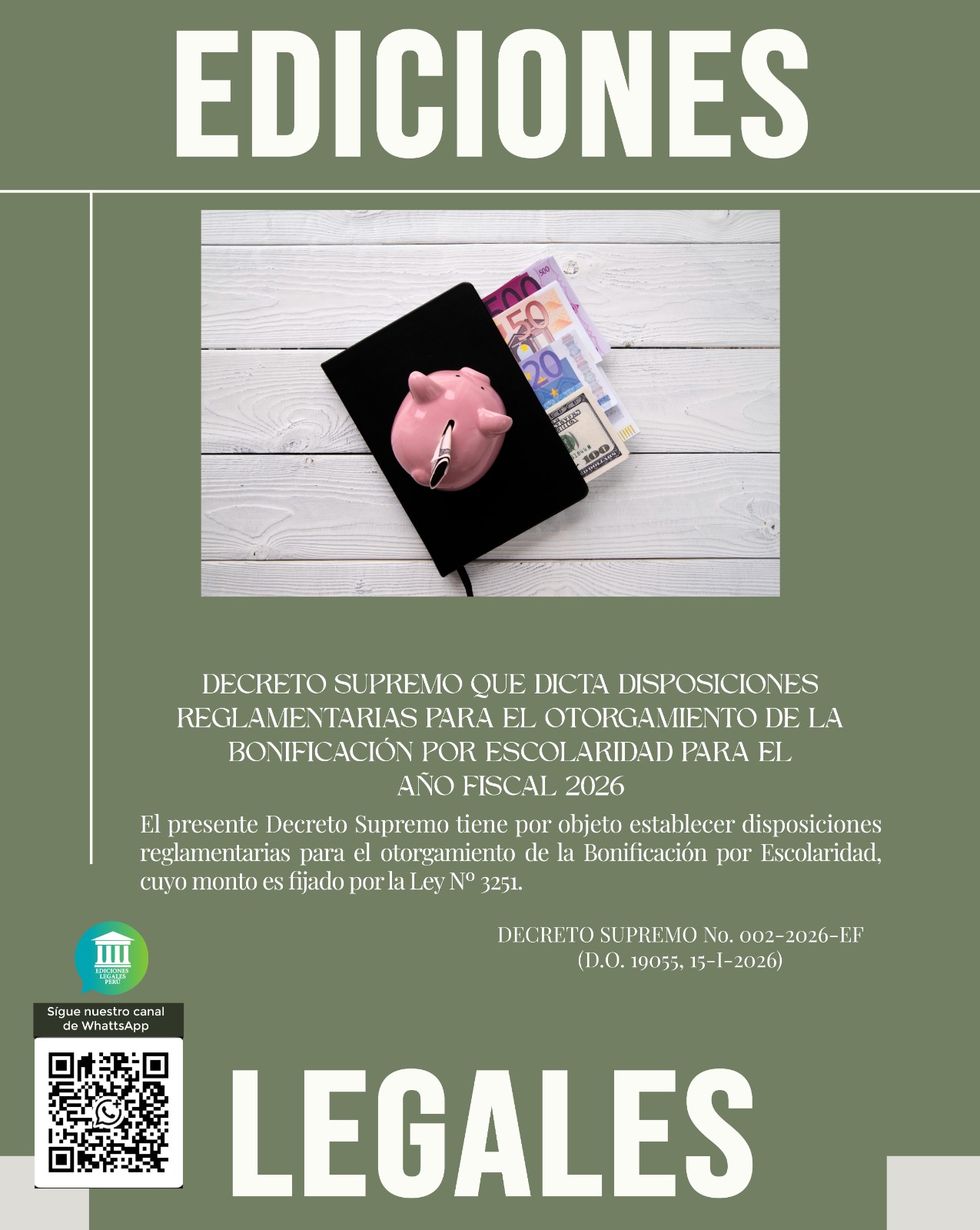 novedades juridicas DECRETO SUPREMO QUE DICTA DISPOSICIONES REGLAMENTARIAS PARA EL OTORGAMIENTO DE LA BONIFICACIÓN POR ESCOLARIDAD PARA EL AÑO FISCAL 2026 15 enero 2026 Pablo Cajas