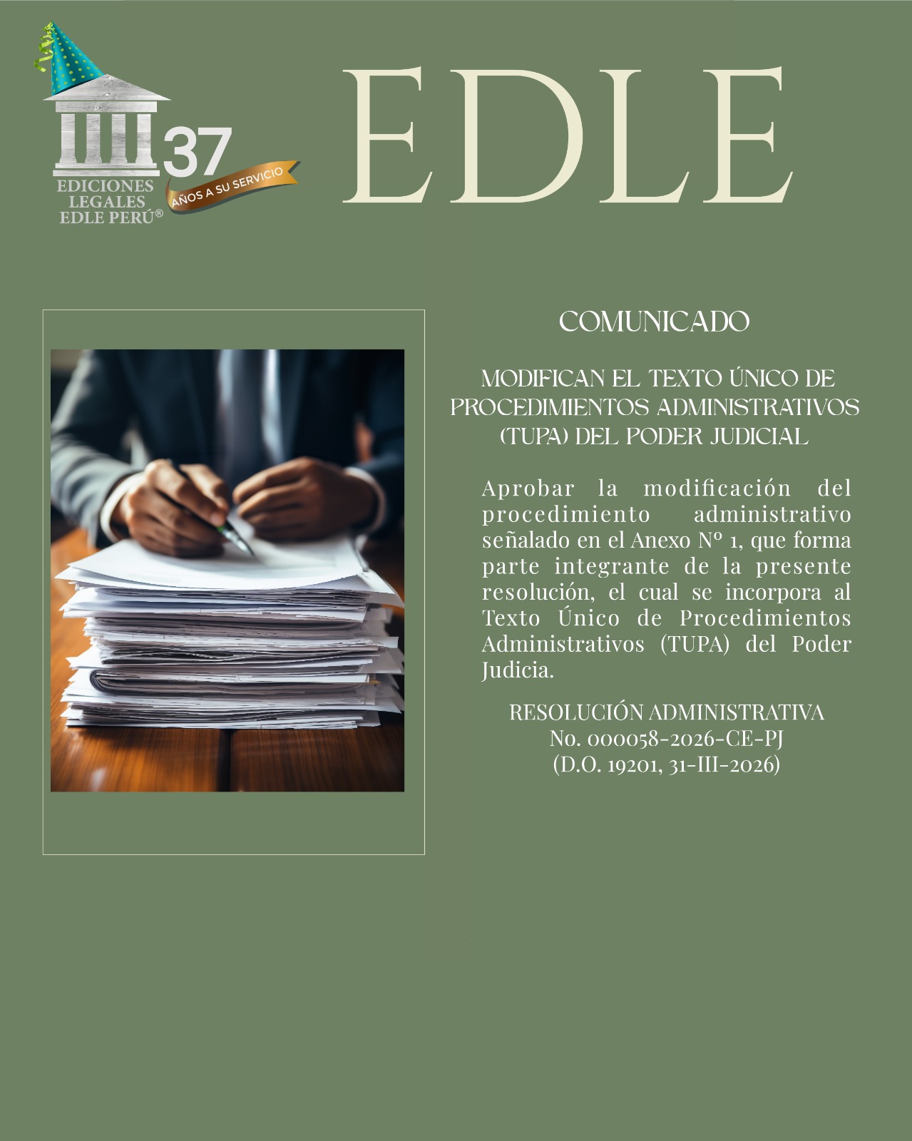 novedades juridicas MODIFICAN EL TEXTO ÚNICO DE PROCEDIMIENTOS ADMINISTRATIVOS (TUPA) DEL PODER JUDICIAL 31 marzo 2026 Pablo Cajas