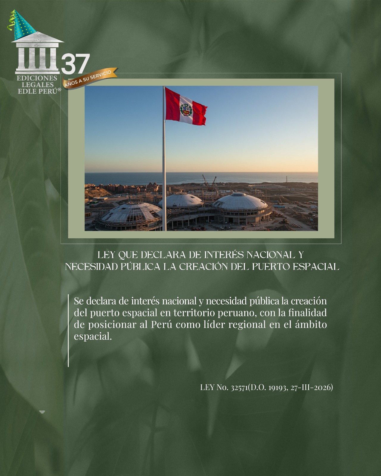 novedades juridicas LEY QUE DECLARA DE INTERÉS NACIONAL Y NECESIDAD PÚBLICA LA CREACIÓN DEL PUERTO ESPACIAL 27 marzo 2026 Pablo Cajas
