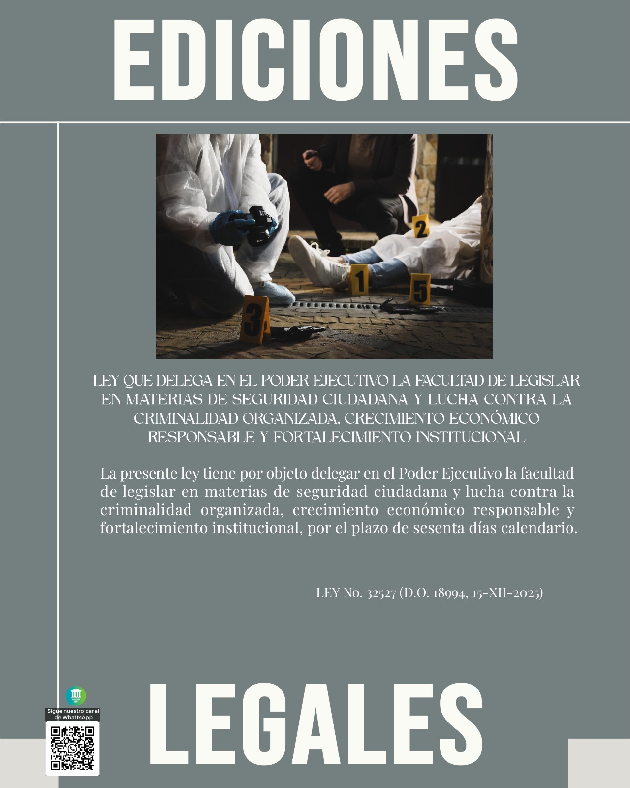 Sin categoría LEY QUE DELEGA EN EL PODER EJECUTIVO LA FACULTAD DE LEGISLAR EN MATERIAS DE SEGURIDAD CIUDADANA Y LUCHA CONTRA LA CRIMINALIDAD ORGANIZADA, CRECIMIENTO ECONÓMICO RESPONSABLE Y FORTALECIMIENTO INSTITUCIONAL 15 diciembre 2025 Pablo Cajas