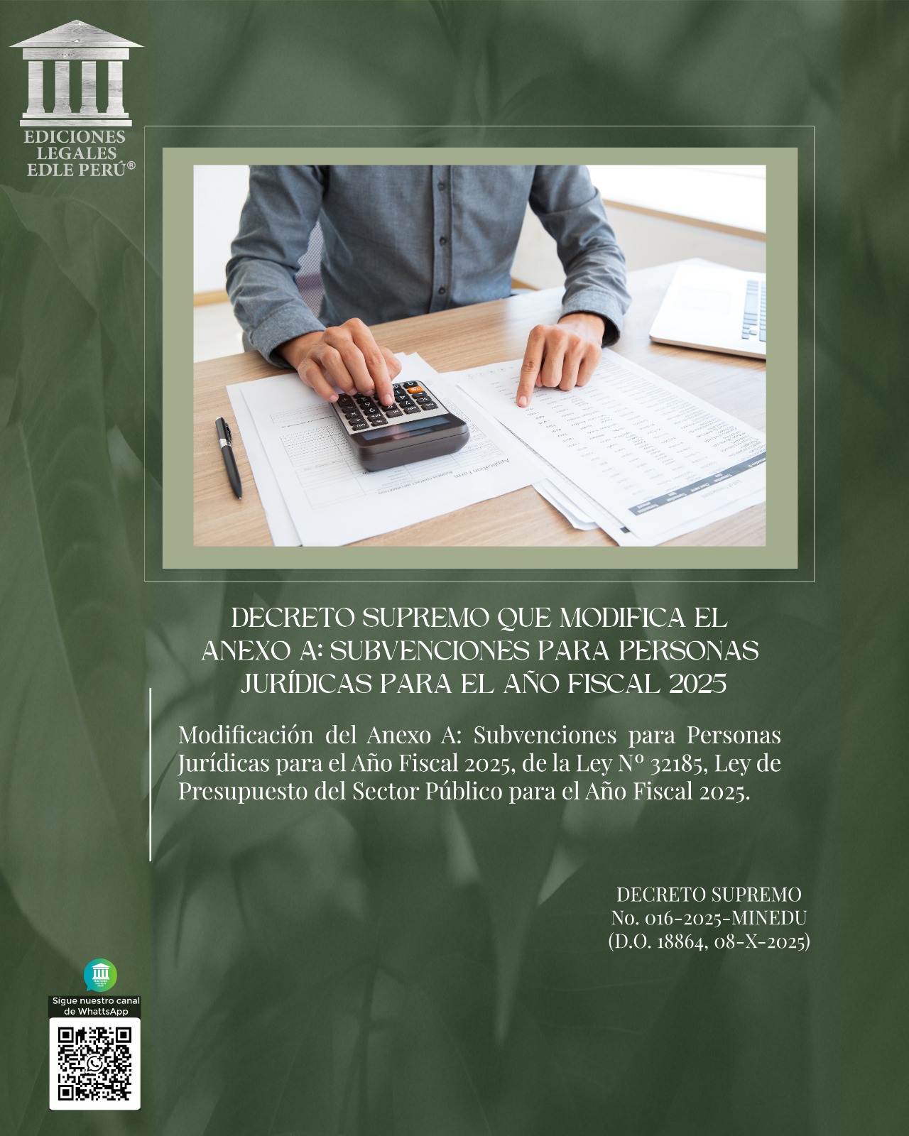 DECRETO SUPREMO QUE MODIFICA EL ANEXO A: SUBVENCIONES PARA PERSONAS JURÍDICAS PARA EL AÑO FISCAL 2025