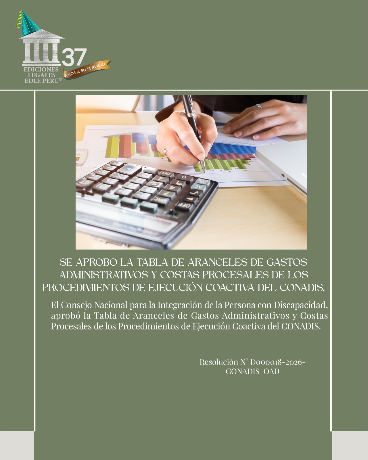 El Consejo Nacional para la Integración de la Persona con Discapacidad, aprobó la Tabla de Aranceles de Gastos Administrativos y Costas Procesales de los Procedimientos de Ejecución Coactiva del Consejo Nacional para la Integración de la Persona con Discapacidad (CONADIS).