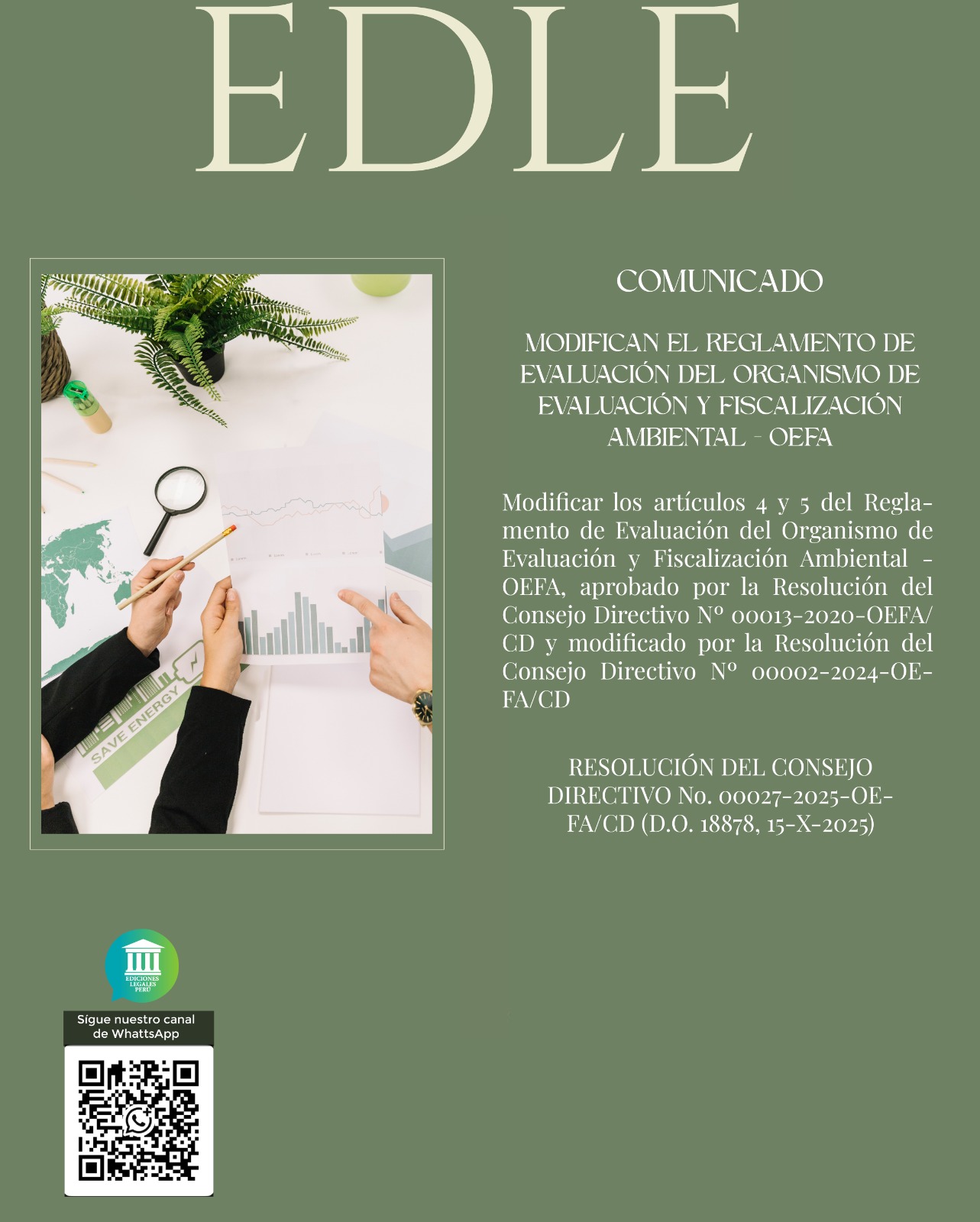 MODIFICAN EL REGLAMENTO DE EVALUACIÓN DEL ORGANISMO DE EVALUACIÓN Y FISCALIZACIÓN AMBIENTAL – OEFA