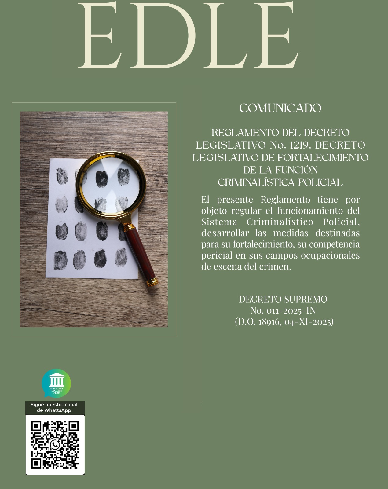 REGLAMENTO DEL DECRETO LEGISLATIVO No. 1219, DECRETO LEGISLATIVO DE FORTALECIMIENTO DE LA FUNCIÓN CRIMINALÍSTICA POLICIAL