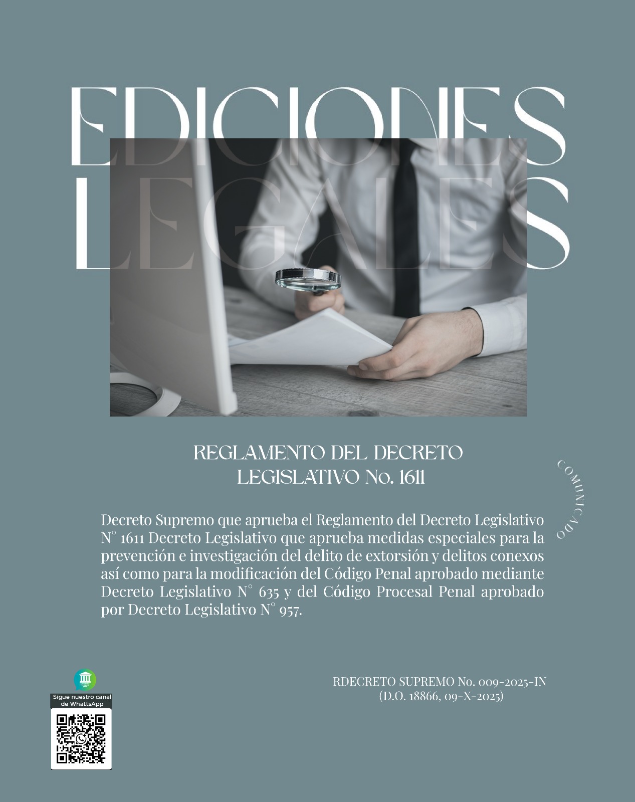Decreto Supremo que aprueba el Reglamento del Decreto Legislativo N° 1611 Decreto Legislativo que aprueba medidas especiales para la prevención e investigación del delito de extorsión y delitos conexos