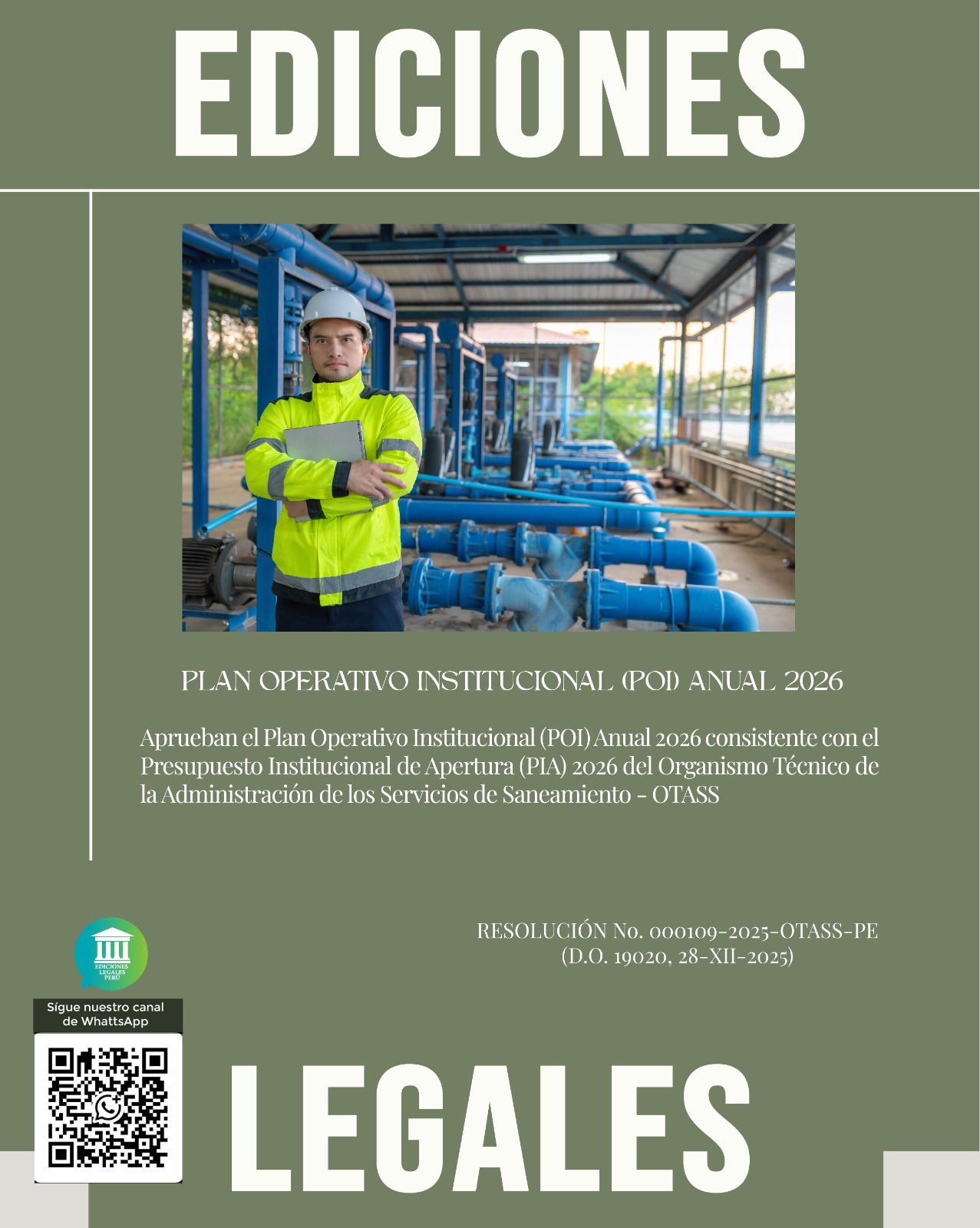 Aprueban el Plan Operativo Institucional (POI) Anual 2026 consistente con el Presupuesto Institucional de Apertura (PIA) 2026 del Organismo Técnico de la Administración de los Servicios de Saneamiento – OTASS RESOLUCIÓN No. 000109-2025-OTASS-PE (D.O. 19020, 28-XII-2025)