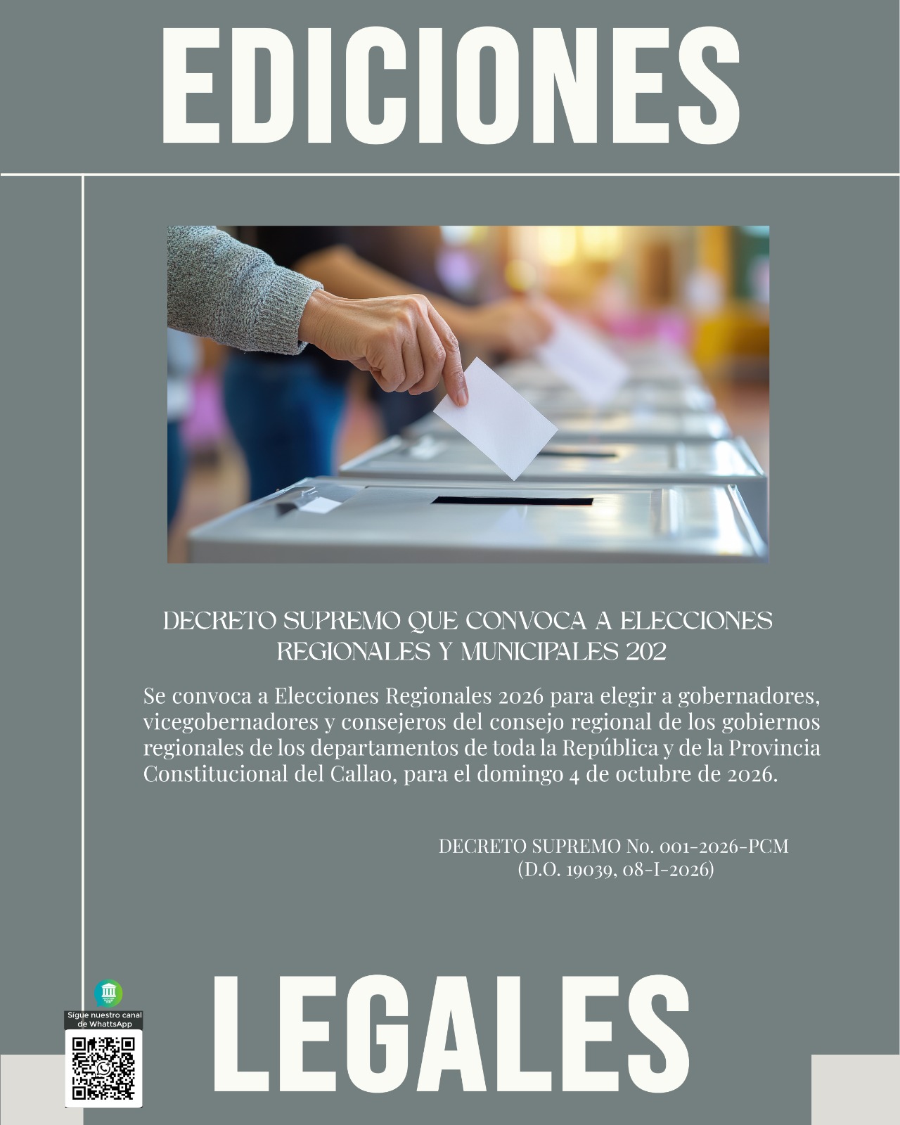 DECRETO SUPREMO QUE CONVOCA A ELECCIONES REGIONALES Y MUNICIPALES 2026