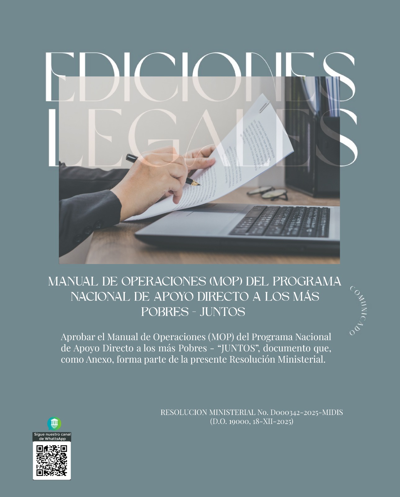 Aprobar el Manual de Operaciones (MOP) del Programa Nacional de Apoyo Directo a los más Pobres – “JUNTOS”, documento que, como Anexo, forma parte de la presente Resolución Ministerial. RESOLUCION MINISTERIAL No. D000342-2025-MIDIS (D.O. 19000, 18-XII-2025)
